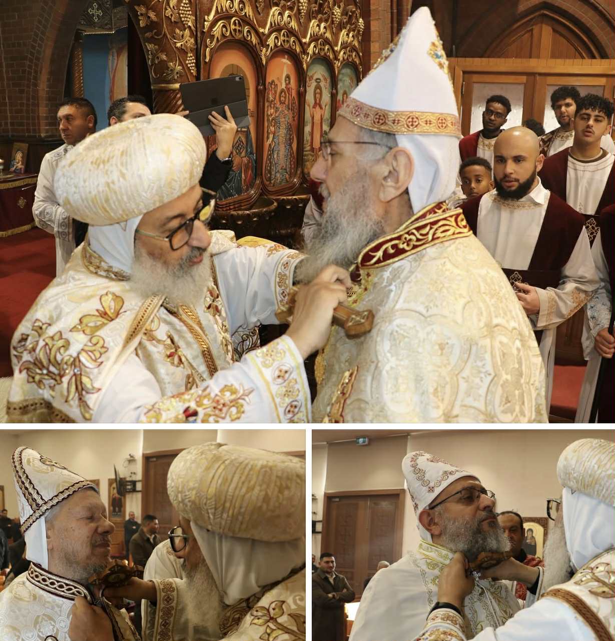 ترأس القداس الإلهي صباح أمس الأحد الموافق ٢٠ يوليو ، نيافة الحبر الجليل الأنبا رويس الأسقف العام لشرق أسيا والمشرف على إيبارشية ملبورن وتوابعها ، بكنيسة القديس مقاريوس الكبير فى مدينة ملبورن عاصمة ولاية فيكتوريا ، بحضور ومشاركة كهنة الكنيسة ، وعقب صلاة الصلح أتم الحبر الجليل طقس ترقية كهنة الكنيسة القس ستيفن منقريوس والقس أرسانيوس صليب لرتبة القمصية ، وسيامة شمامسة جدد ، ويذكر أن صلى الأنبا رويس القداس الإلهي يوم الأحد الماضى الموافق ١٣ يوليو بكنيسة القديسة العذراء مريم ، قام خلاله بترقية القس حبيب جرجس يونان كاهن الكنيسة إلى رتبة القمصية ، والشمامسة جورج روفائيل ومكاريوس روفائيل إلى رتبة الدياكونية ورسامة شمامسة جدد .