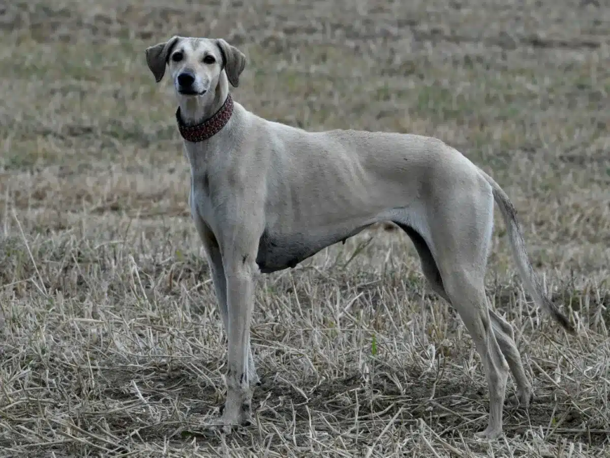 تمتاز ببنية جسدية نحيفة ورقيقة وسرعة في الجري، فضلا عن رقبة طويلة ورأس رفيع معتدل الحجم مع أنف مدبب قليلا وظهر مقوس، وظهرت على رسوم فسيفساء تاريخية موثّقة في متاحف، في مشاهد صيد منذ آلاف السنين.