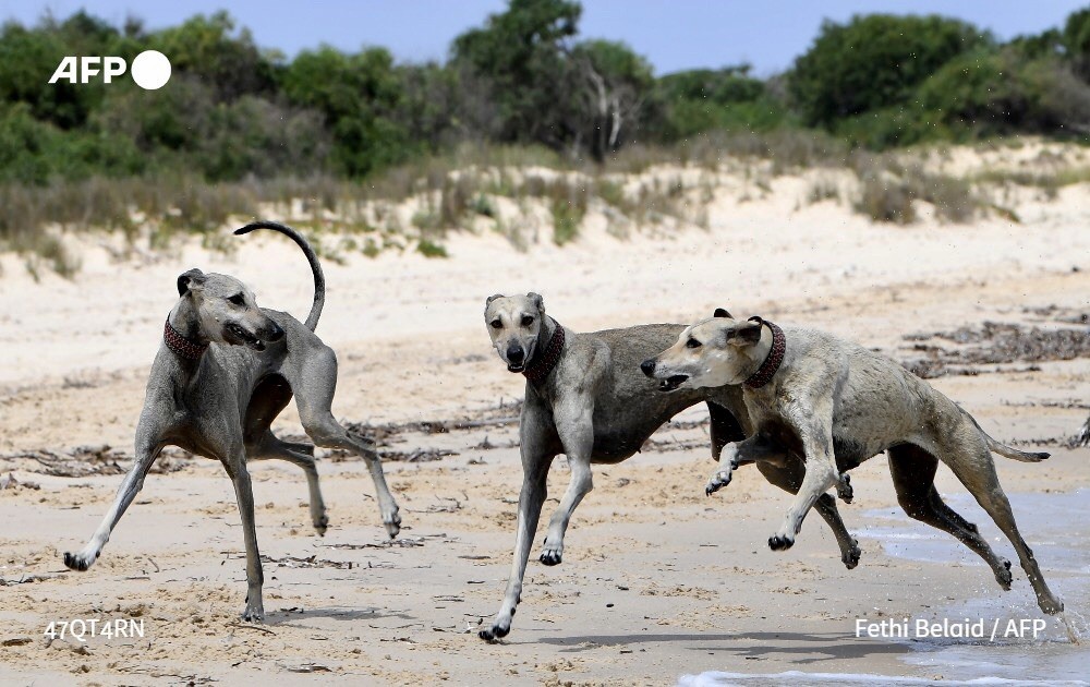 تحث ألفة عبيد البيطرية خطاها في جولة صباحية على شاطئ منطقة رأس أنجلة في شمال تونس ترافقها فيها نمشه وزينه وزوينه، كلباتها من فصيلة السلوقي المحلية التي أصبحت “مهددة” بسبب التهجين، ما دفع منظمات مدنية للعمل على تأصيلها من أجل حمايتها.