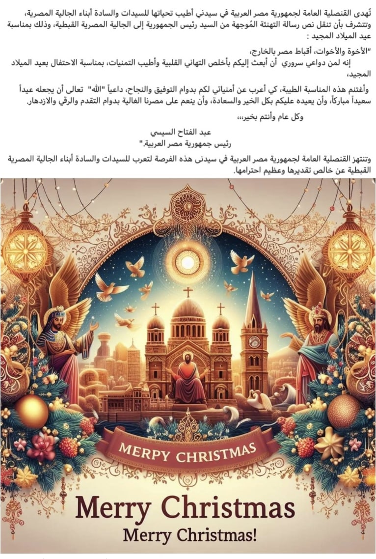 السفارة والقنصليات المصرية بأستراليا تهنئ الجالية القبطية بعيد الميلاد وتعلن الأثنين أجازة
