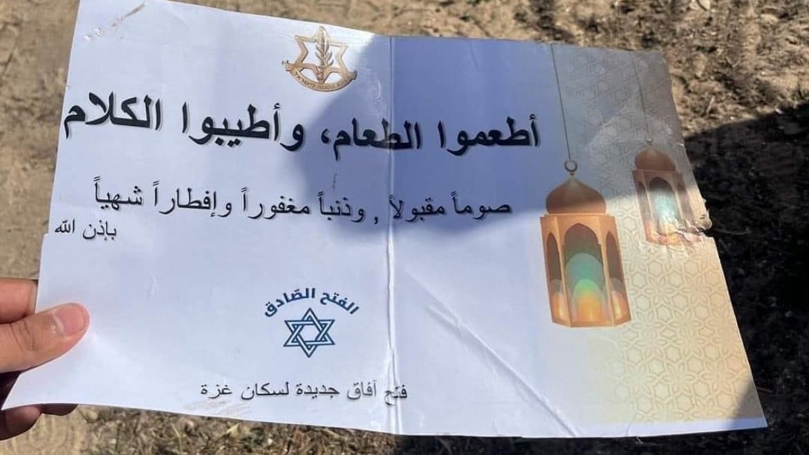 War on Gaza: Israel air drops Ramadan leaflets on Gaza amid widespread starvation