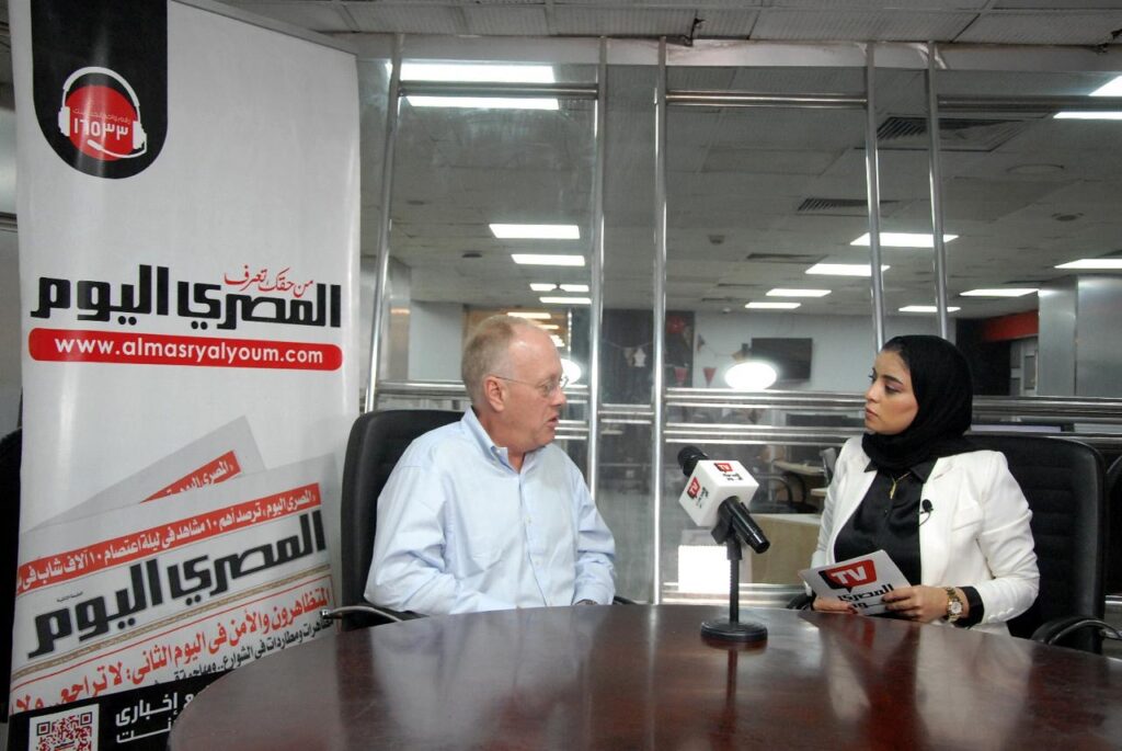 Before I begin, Engy, I just want to say it’s an honor to be here with you and with Al-Masry Al-Youm. Allow me to extend my greetings to my friend Mohamed Salmawy and my friend Khaled al-Balshy, whom I greatly respect.