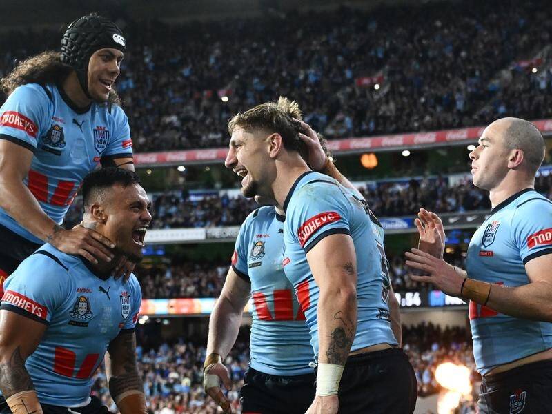 It took until the 53rd minute for the Maroons to get off the mark, Jeremiah Nanai barging over after Blues forward Liam Martin and Queensland lock Patrick Carrigan had been sin-binned for a push and shove.