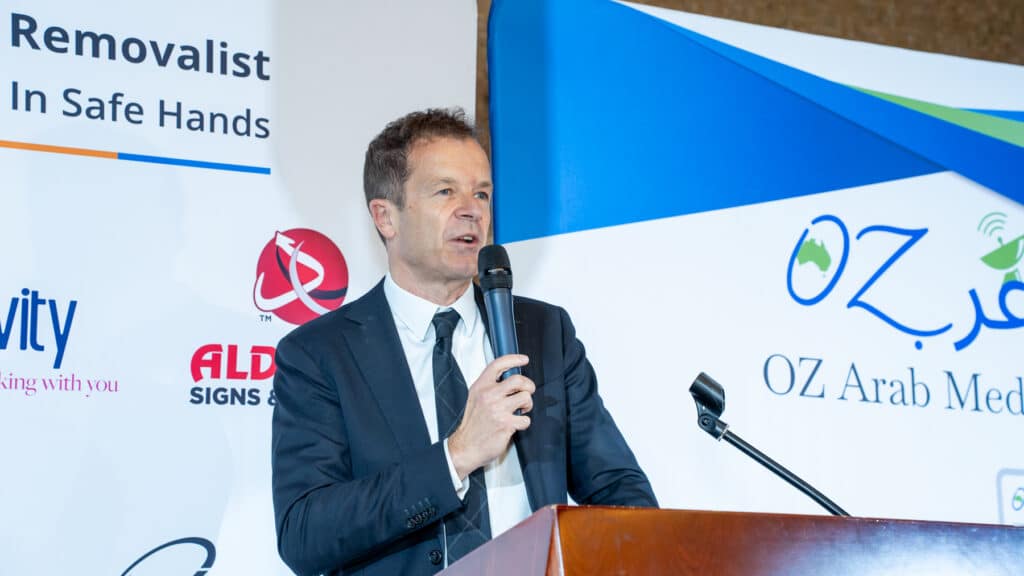 Diplomatic guests included His Excellency Mr Milad Raad, Ambassador of Lebanon and Dean of the Council of Arab Ambassadors, alongside Ambassador Wassane Zailache from Morocco, Charge D’Affaires Abdellatif from Sudan and Diplomats from Saudi Arabia. Federally, the Hon. Tony Burke MP addressed attendees, while state politics was represented by both the Hon. Mark Speakman MP, NSW Opposition Leader, and the Hon. Sophie Cotsis MP, who stepped in for the Hon. Jihad Dib MP after his last-minute apology, because he was busy dealing with the flooding problem that was sweeping the state, and delivered the Premier’s message.
