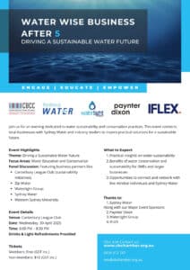 Engage. Educate. Empower. (Thanks to Sydney Water) Join us for an evening dedicated to water sustainability and conservation practices. This event