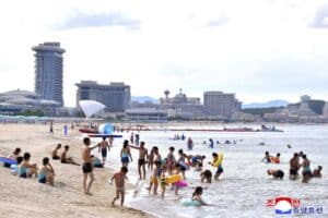 This photo provided on July 2, 2025, by the North Korean government shows a beach resort in the Wonsan-Kalma eastern