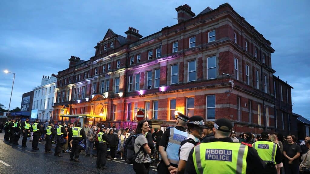 The rioting, which began last week, continued on Monday night in Belfast, Plymouth and Darlington, the latter of which saw groups of far-right crowds gather in the North Lodge Park area, in the vicinity of a mosque.